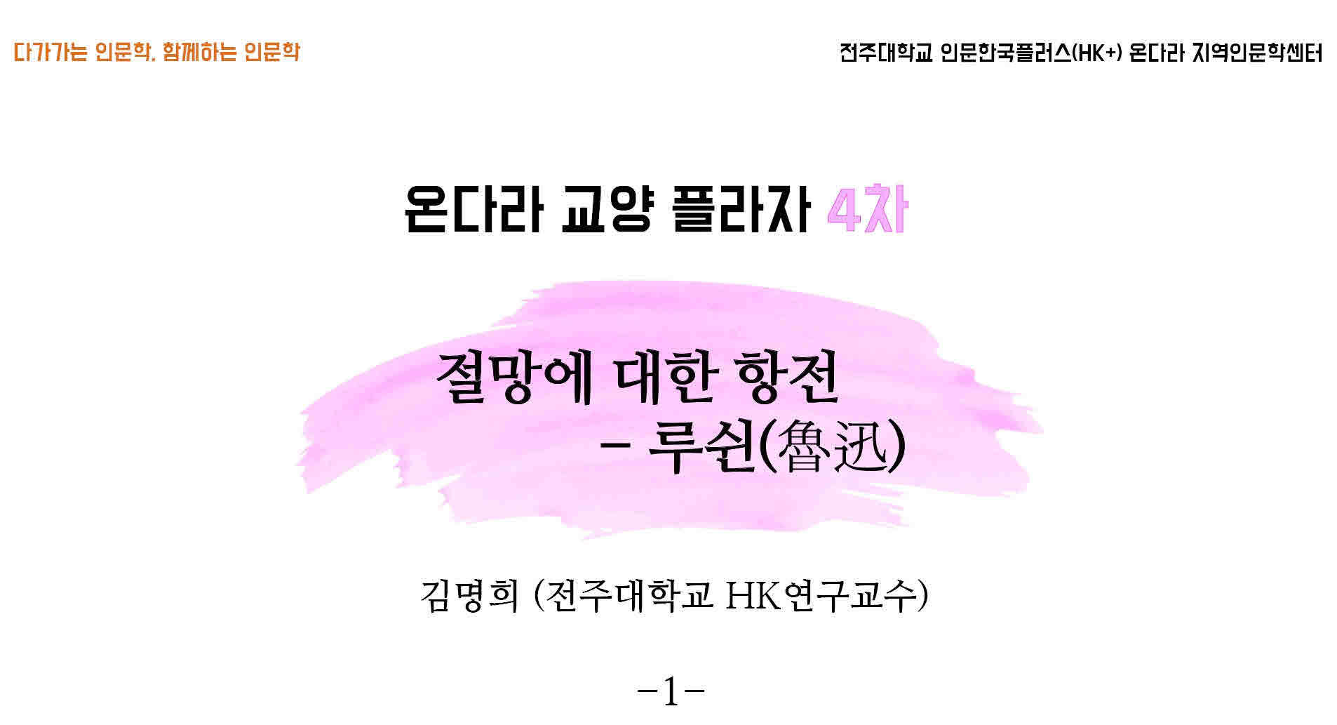 인문교양강좌 『온다라 교양 플라자』 4차(2020. 4. 15.)