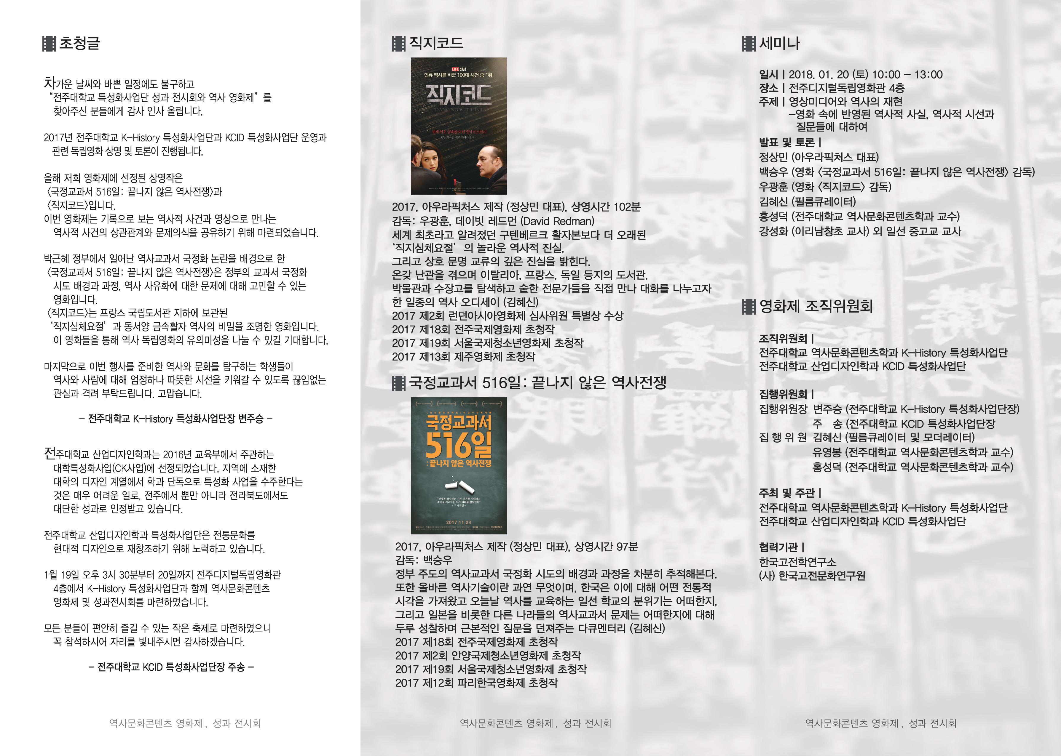 | 186 | K-History 특성화사업단 '역사영화제 및 성과전시회' 안내 | 전세라 | 18-01-18 | 3678 |