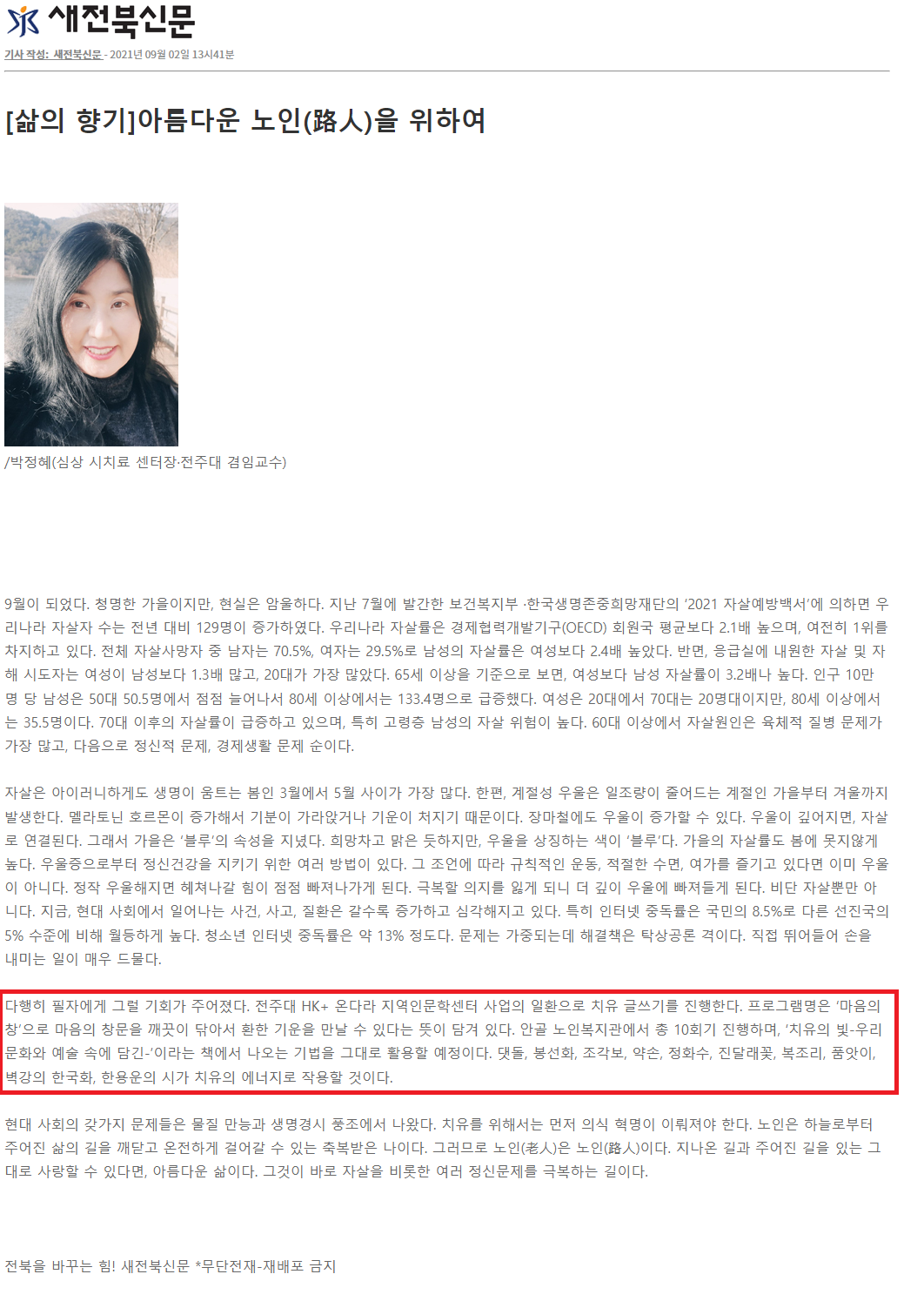 | 489 | 기타 | [삶의 향기]아름다운 노인(路人)을 위하여 | 온다라 지역인문학센터 | 22-01-25 | 204 |