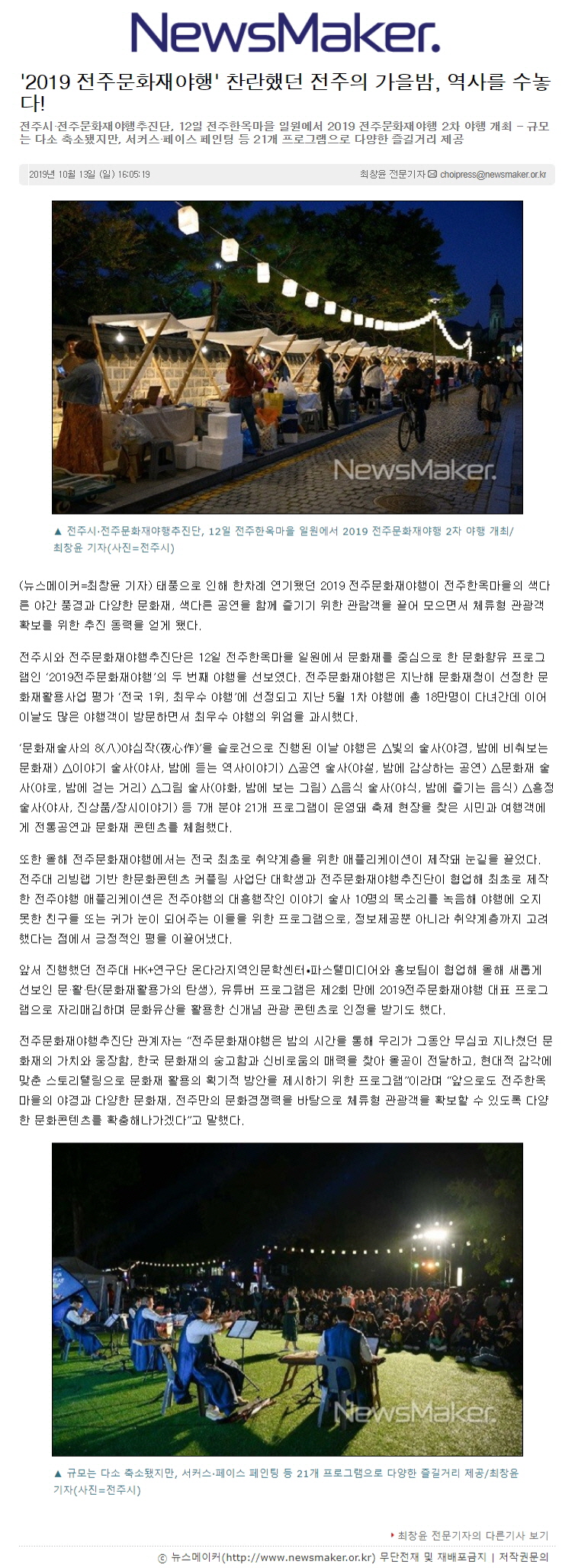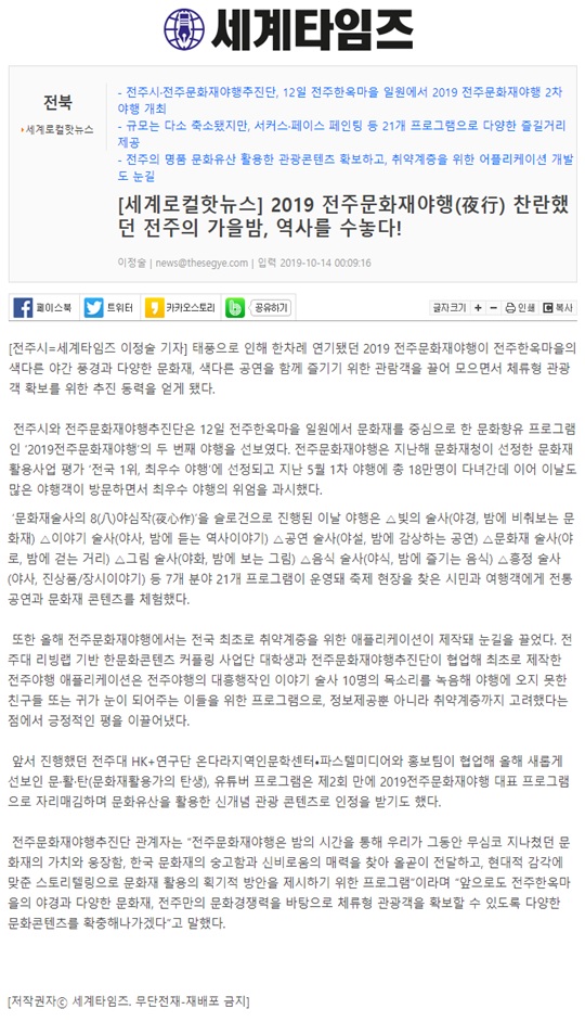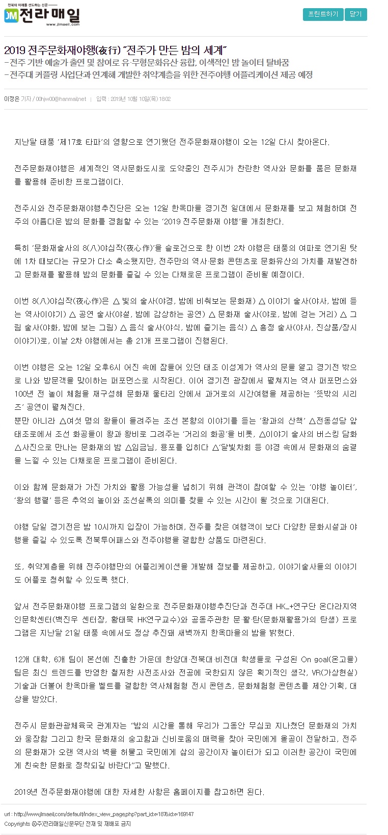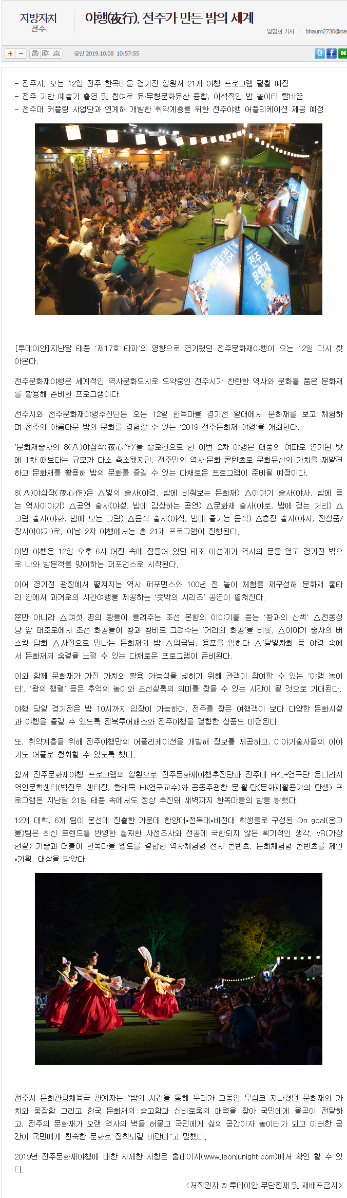 2019 전주문화재야행(夜行) 찬란했던 전주의 가을밤, 역사를 수놓다!