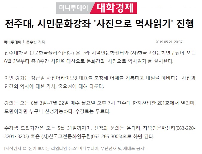 전주대, 시민문화강좌 '사진으로 역사읽기' 진행