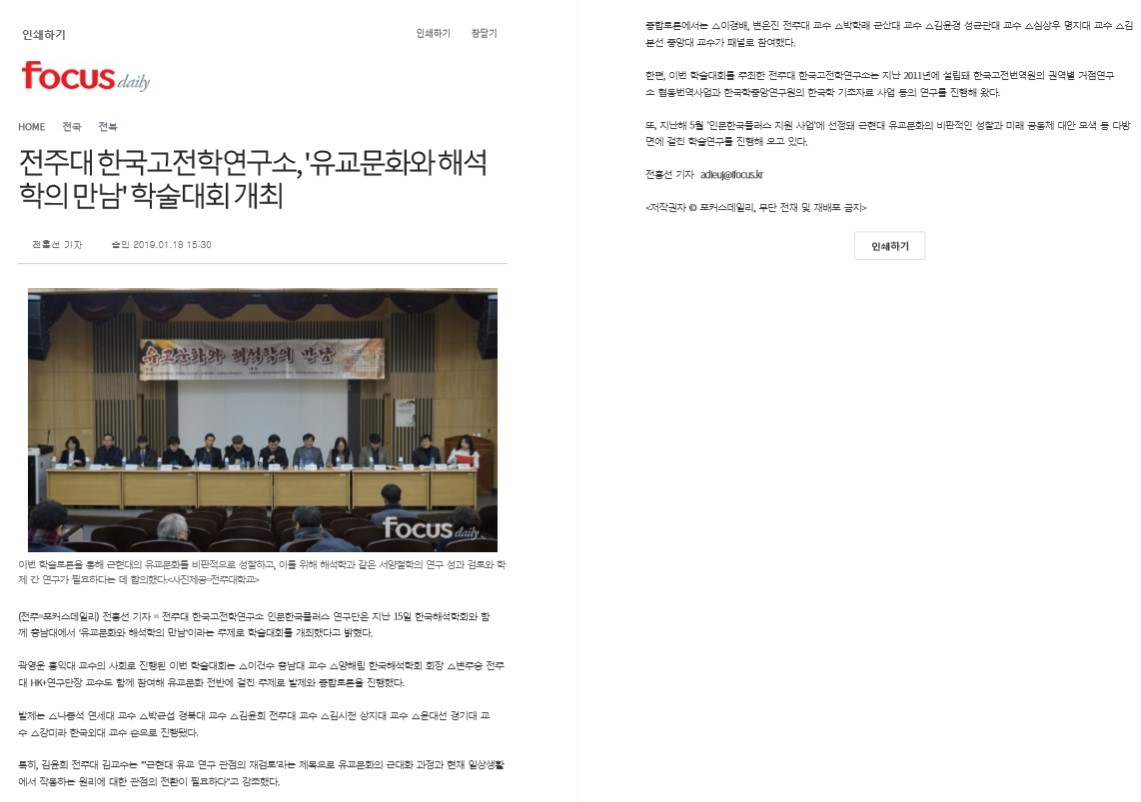 전주대 한국고전학연구소, '유교문화와 해석학의 만남' 학술대회 개최