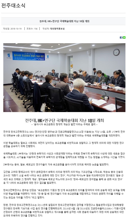 | 70 | 기타 | 전주대, HK+연구단 국제학술대회 지난 18일 개최 | 온다라 지역인문학센터 | 19-08-08 | 236 |