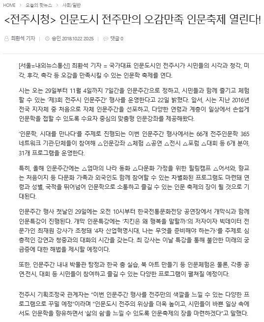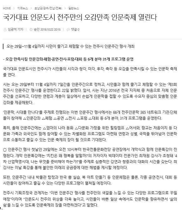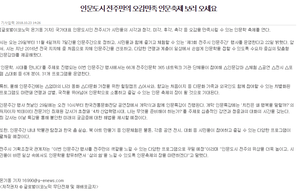 <전주시청> 인문도시 전주만의 오감만족 인문축제 열린다!