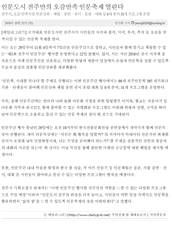 인문도시 전주만의 오감만족 인문축제 보러 오세요