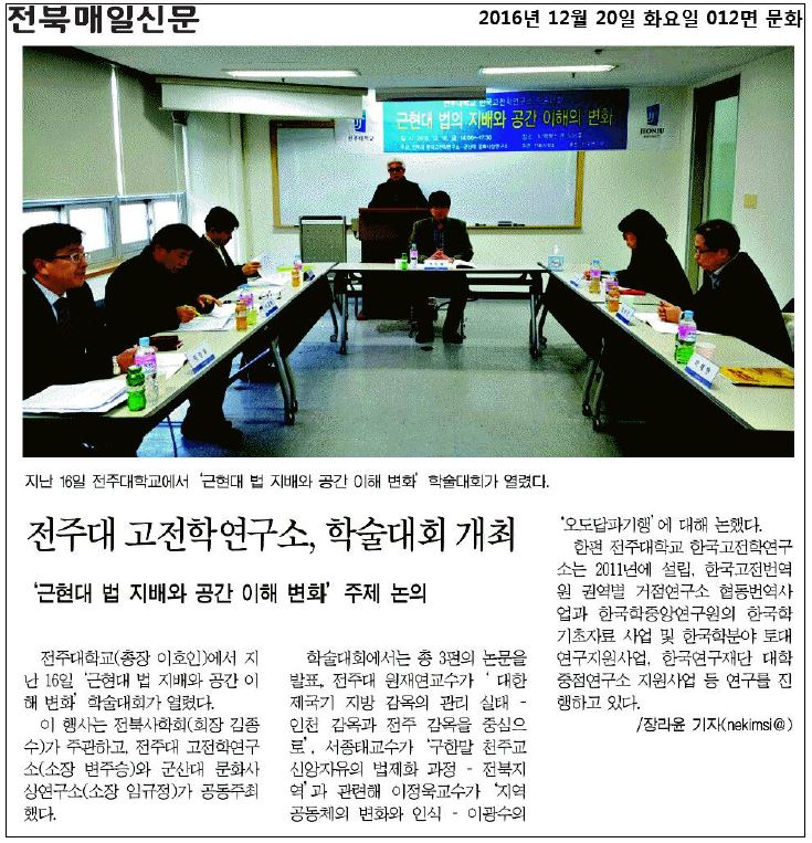 한국고전학연구소 중점연구소 학술대회 보도자료(16.12.16)