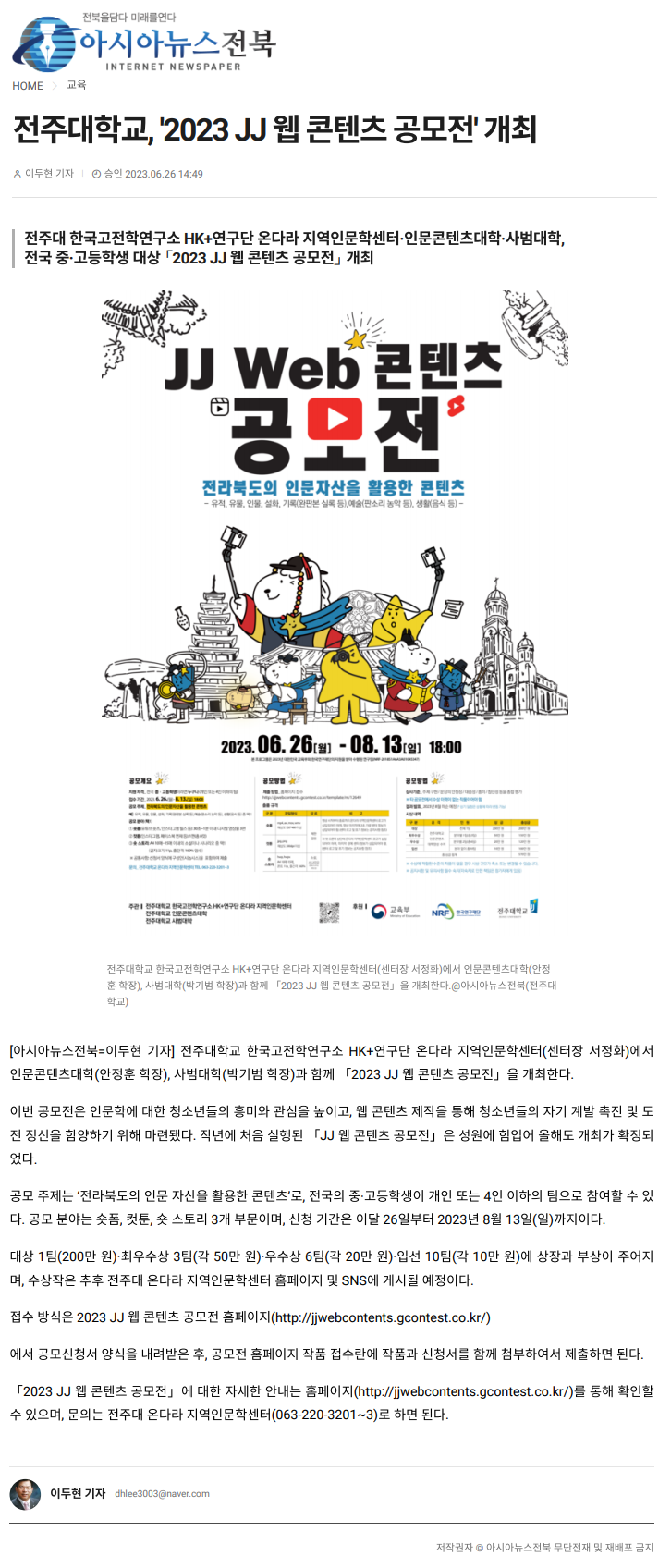 전주대학교, 2023 JJ 웹 콘텐츠 공모전 개최